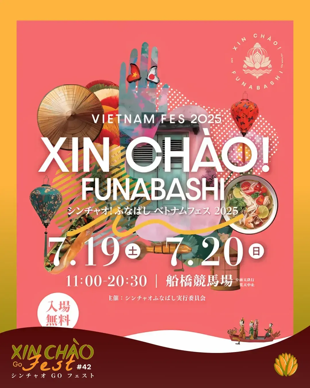 バインミーシンチャオのフェスティバルツアー「シンチャオGOフェスト #42」は、千葉県・船橋競馬場で開催される熱い夏祭り、ベトナムフェス2025「シンチャオ!ふなばし」です。食、文化、スポーツが融合したこの大規模イベントに、私たちは全力で参加いたします。