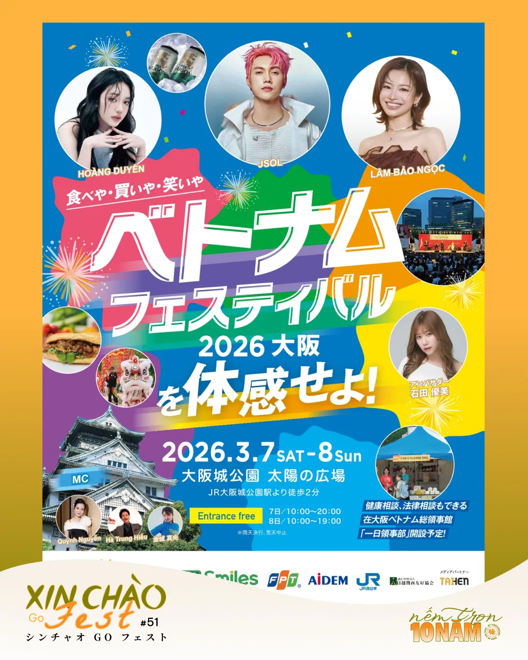 日本全国にベトナムの味をお届けするプロジェクト「シンチャオGOフェスト」。記念すべき第51回目は、関西最大級の日越交流イベント「ベトナムフェスティバル 2026 大阪」への出店が決定しました!